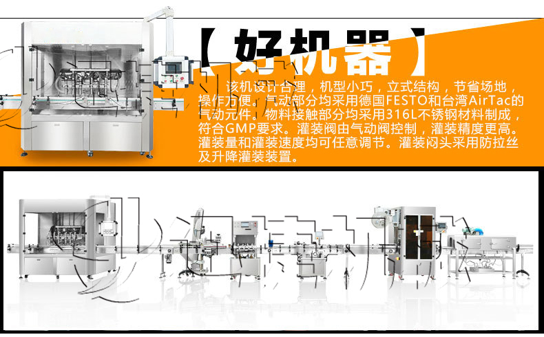 1、快速清洗、便于调整、容积缸体动作无极调速,适合不同规格、不同物料的灌装。充填量一次调整完毕,每个容积缸体可分别微量调节,灌装精度高。接触物料的材料为316不锈钢、硅橡胶、符合QS规范。