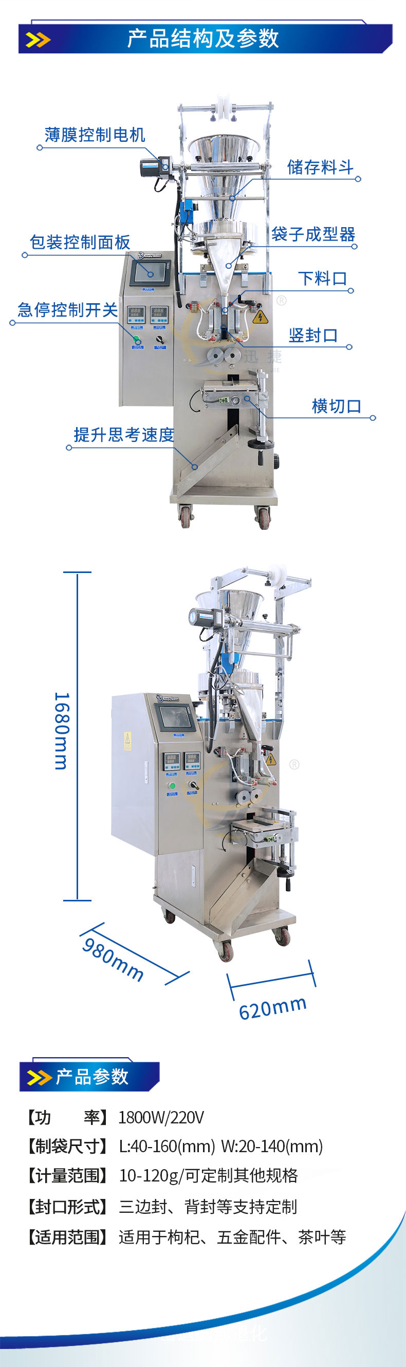全自动立式颗粒包装机适用适合食品、化工产品中的圆状和球状物料的自动包装主。枸杞、五金配件、茶叶等包装。