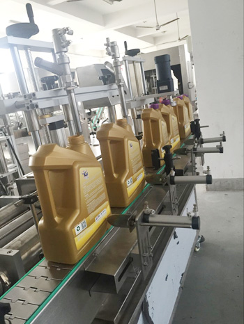 润滑油灌装旋盖一体机为活塞式计量方式。计量范围为1升-5升,离合式旋盖结构,确保旋盖合格率高,不伤盖。本设备为灌装旋盖一体机