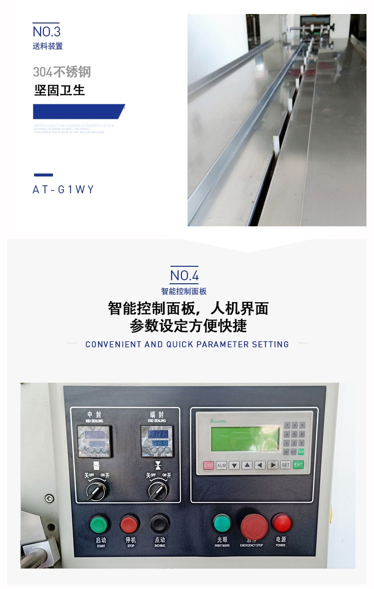 C、先进的微电脑包装控制器,优良的人机对话模式,使速度、袋长、切点位置检测等都可在界面上直接显示。
