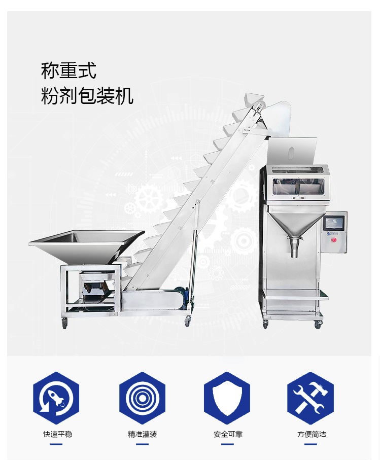 该称重包装机适用于农药、饲料、添加剂、洗衣粉、食盐、味精、白糖、种子、大米等颗粒粉状物料的定量称重包装。