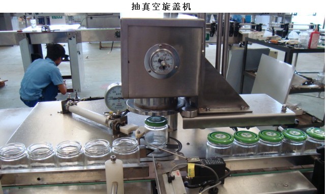 XJ-1型数控马口铁爪式真空旋盖机是在技术上采用了真空室的完全密封结构,在真空室中先抽瓶子内真空在配盖旋盖。并且利用目前成熟的电气控制技术和高性能的气动元件实现编程控制从而实现直筒式全密封真空室的旋转驱动。真空旋盖机的包装容器内能保持真空同时具有刚性,不易瘪。盖子内用密封胶将瓶子旋合,瓶内的真空可以长时间保存。真空室处于筒状空间几乎不存在间隙并无泄漏,他的抽真空效率是高、能耗低。