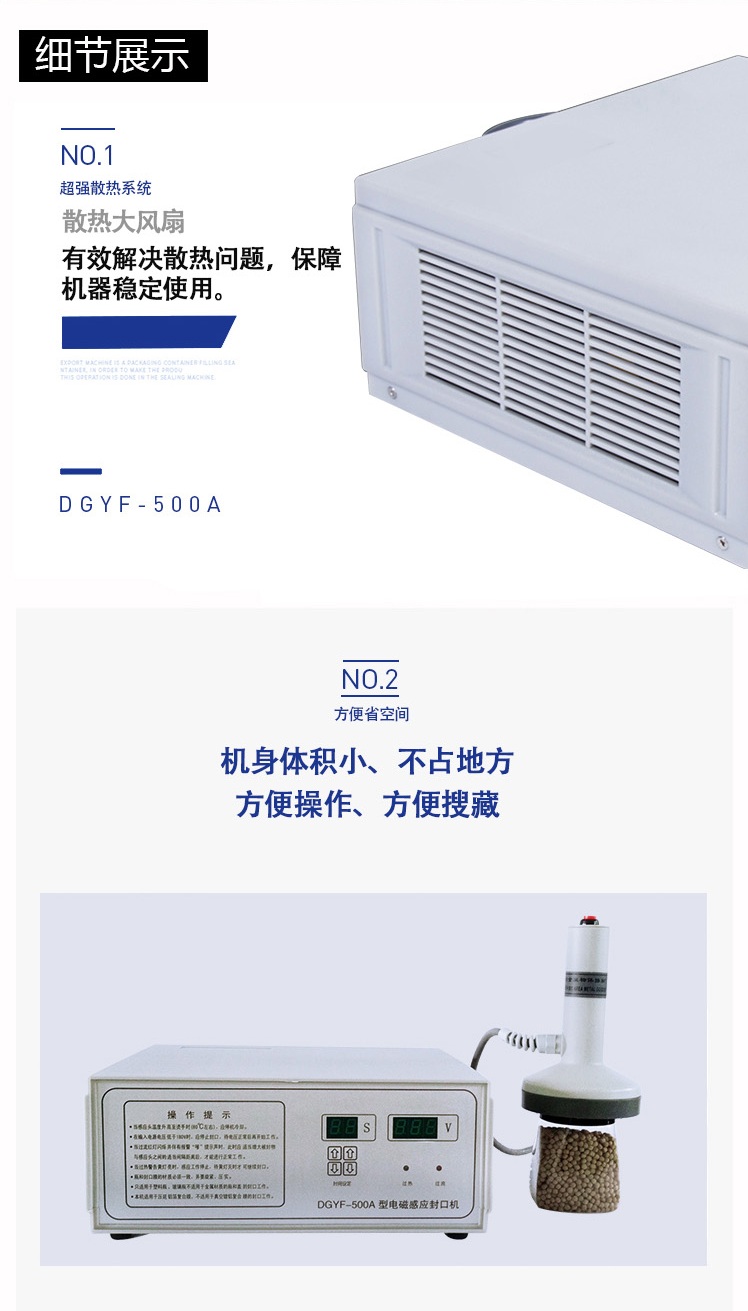 本机采用国外先进线路,选用日本新模块化功率器件,较于一般电子感应加热器更省电,热效率达到90%以上,瞬时加热速度为后者的20-30倍,因此不仅 适用于热封性能较好的聚乙烯、聚丙烯材质的瓶体,而且对热封性能较差的聚酯瓶、玻璃瓶也有极好的封口效果。