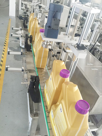 设备描述:润滑油灌装旋盖一体机为活塞式计量方式。计量范围为1升-5升,离合式旋盖结构,确保旋盖合格率高,不伤盖。本设备为灌装旋盖一体机,结构紧凑,性价比高。该型号灌装机适用于医药、日化、食品、农药及特殊行业,是对酒精等液体进行灌装的理想设备。